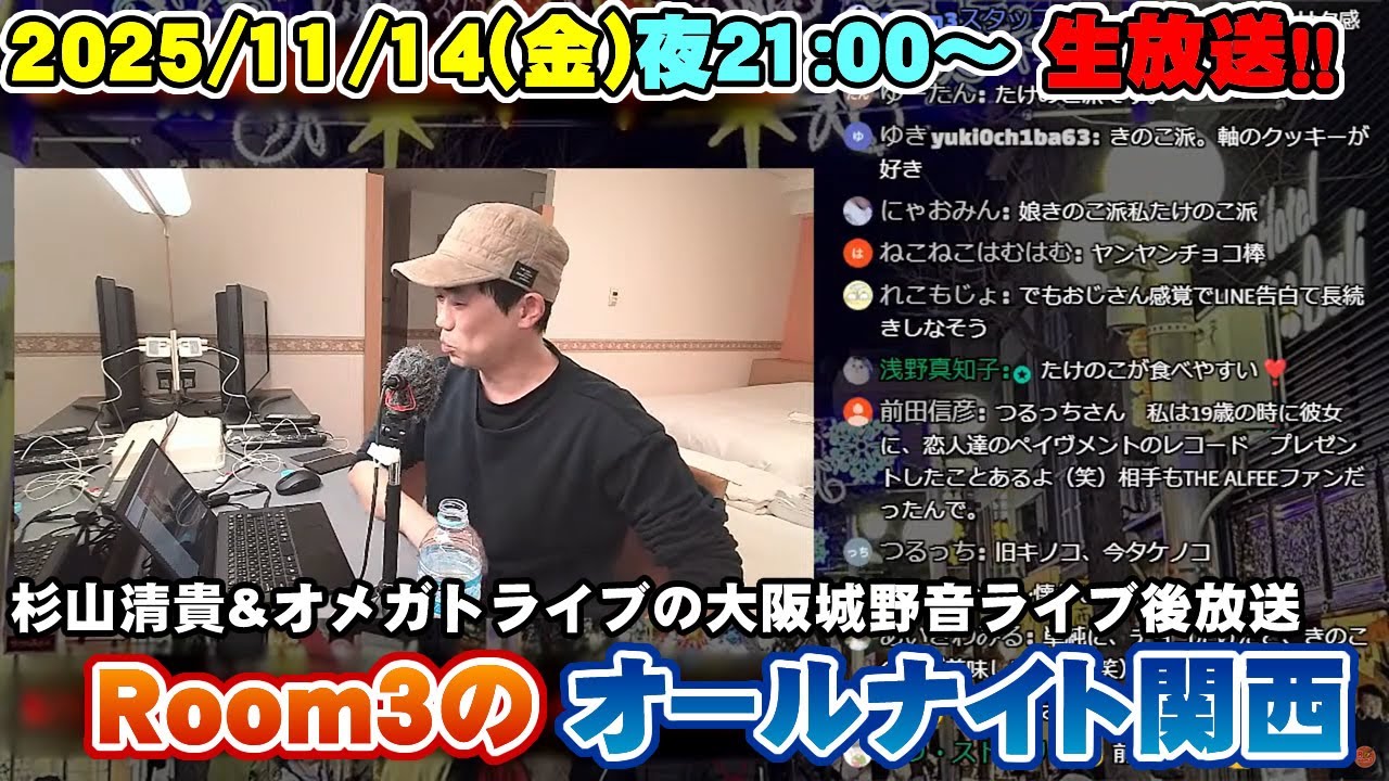【Room3のオールナイト関西Vol159】11/14(金)21時~ 杉山清貴さんのライブ後生配信(大阪城野外音楽堂)・そしてRoom3の記念すべき日が過ぎ去りました😓