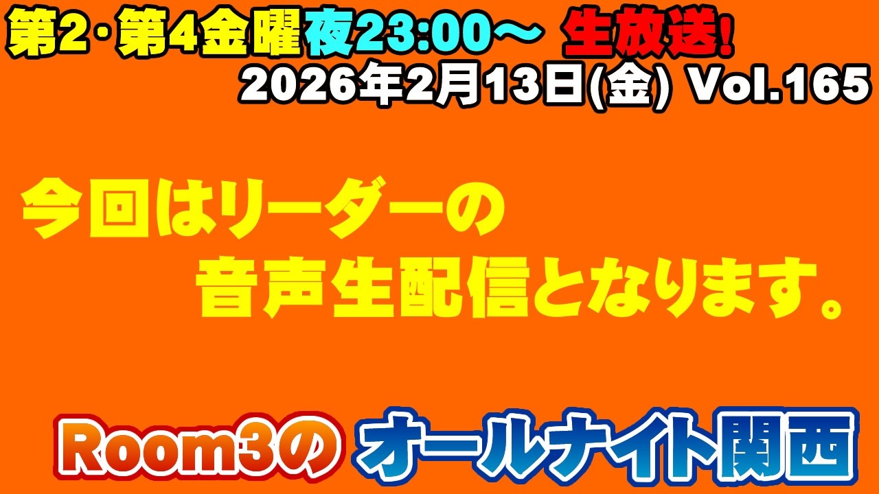 ★本日2/13(金)はジェイソンではなく、オールナイト関西、リーダーの音声生放送となります。初めての方も常連の方もコメント欄で遊びましょう(`・ω・´)ゞ どしどしチャット読んでいきます!!