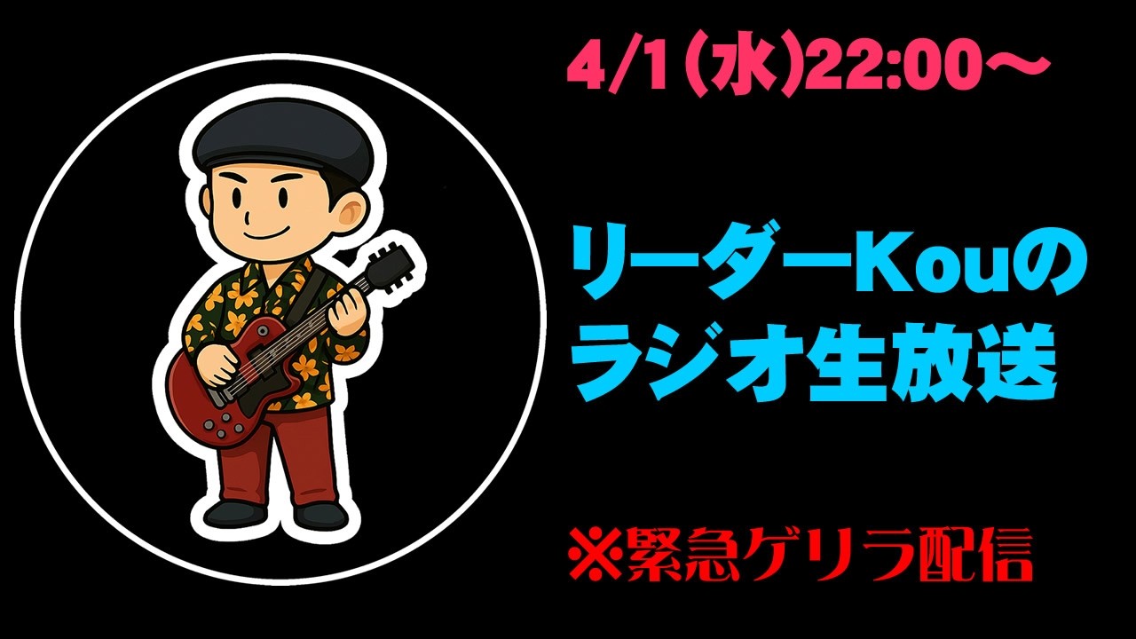【リーダーのラジオ生放送】(緊急ゲリラ配信)4/1(水)①札幌ソロLIVE間近です!②別活動のユニットを遥華さんと正式結成した件について。③メジャーで活動するあるギタリストと面白い企画を予定してます!