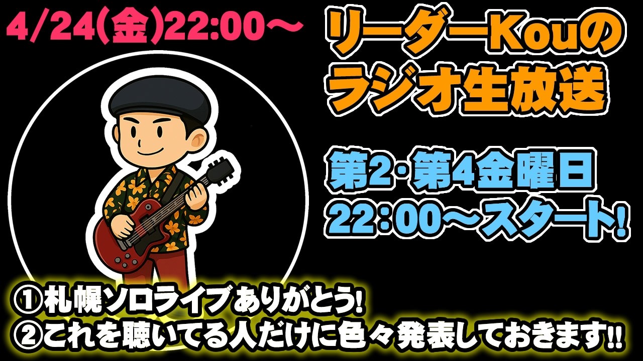 【リーダーのラジオ生放送】4/24(金)①札幌ソロライブありがとう!②これを聴いてる人だけに色々発表しておきます!!